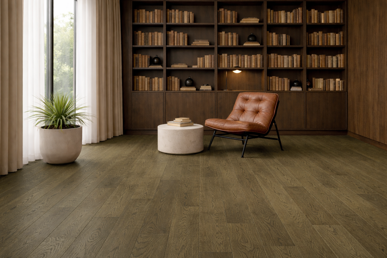 Shadow’s deep tones reveal the full richness and character of oak. Its dark coloration accentuates the wood grain with striking intensity, creating elegant contrast and a strong presence within a space. The result is a sophisticated surface that brings depth and modernity to architectural and contemporary interiors.
